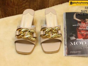 [Size 37] Dép da bò nữ cao gót 6.5cm hồng Female 33C2