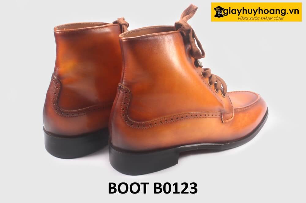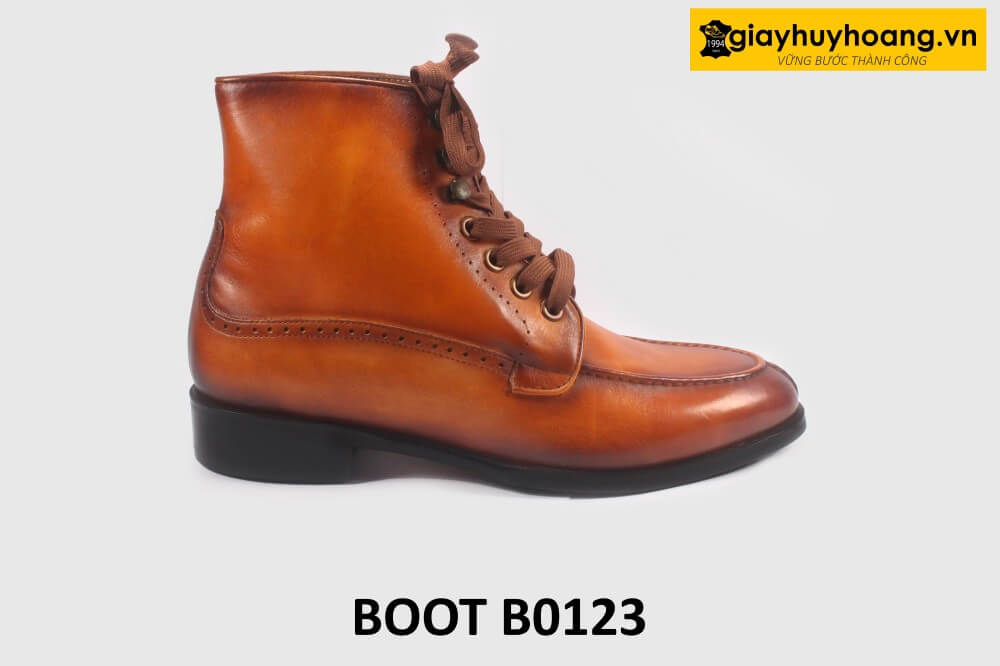 Giày da boot cổ cao nam buộc dây cao cấp B0123 là một trong những thiết kế Handmade sáng tạo, độc đáo, hợp thời trang. Kết hợp giữa nguyên liệu da bò nhập khẩu chọn lọc từ vùng núi tuyết Châu Âu và hơn 150 đôi tay người thợ lành nghề qua 200 công đoạn khác nhau. Tạo nên sản phẩm bền bỉ có giá trị thẩm mỹ cao.