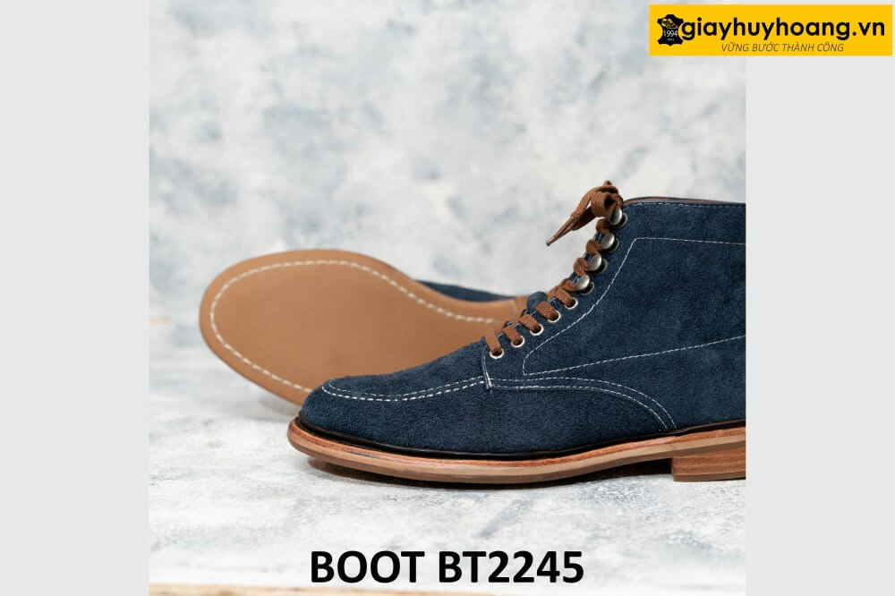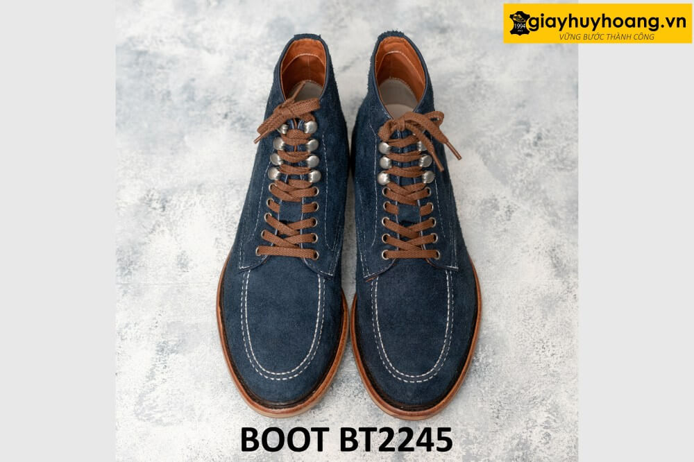 Giới thiệu sản phẩm Giày da lộn boot nam buộc dây xanh navy BT2245 chính hãng