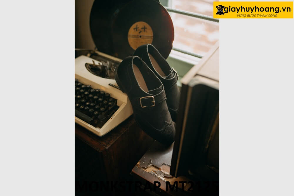 Giới thiệu sản phẩm Giày lười da lộn màu đen đế da bò Monkstrap MT2125 chính hãng