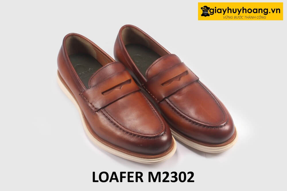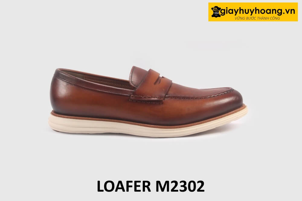 Giới thiệu sản phẩm Giày da nam đế mềm màu bò viền nâu Loafer M2302 chính hãng