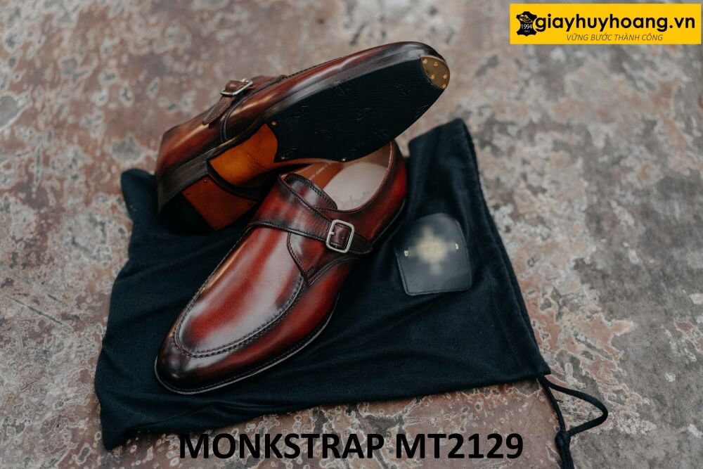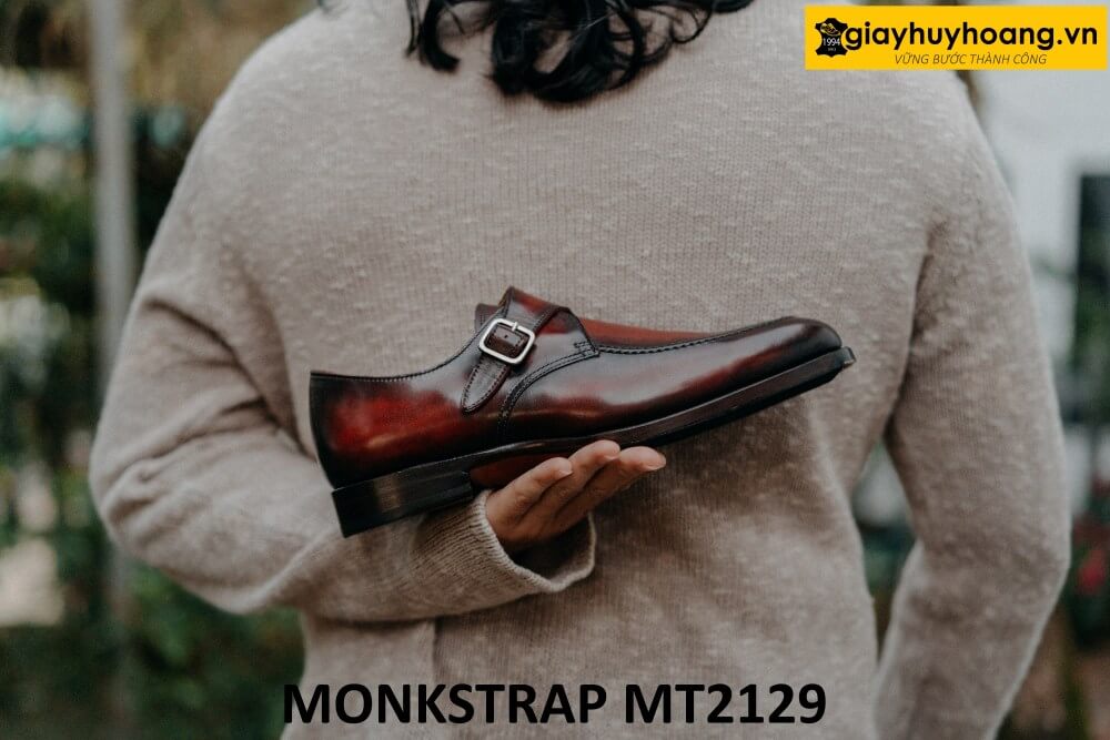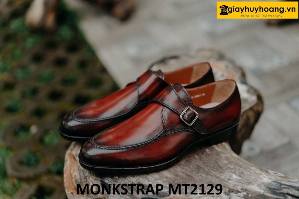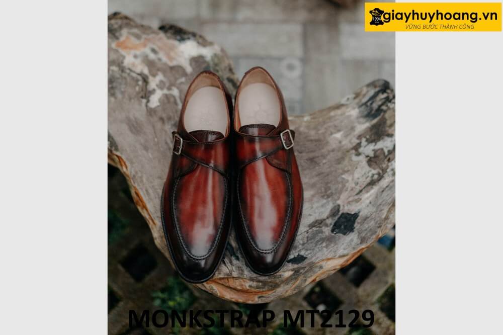 Giới thiệu sản phẩm Giày da nam mũi tròn patina đỏ đô tuyệt đẹp Monkstrap MT2129 chính hãng