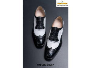 Giới thiệu sản phẩm Giày da nam wingtips đen phối trắng Oxford O2267