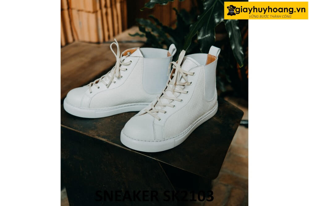 Giày da nam cổ cao phối đế cao su sneaker SK2103 là một trong những thiết kế Handmade sáng tạo, độc đáo, hợp thời trang. Kết hợp giữa nguyên liệu da bê nhập khẩu chọn lọc từ vùng núi tuyết Châu Âu và hơn 150 đôi tay người thợ lành nghề qua 200 công đoạn khác nhau. Tạo nên sản phẩm bền bỉ có giá trị thẩm mỹ cao.