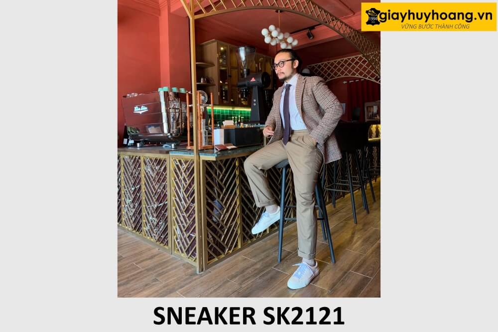Giày da nam sneaker phối với quần jeans SK2121 là một trong những thiết kế Handmade sáng tạo, độc đáo, hợp thời trang. Kết hợp giữa nguyên liệu da bê nhập khẩu chọn lọc từ vùng núi tuyết Châu Âu và hơn 150 đôi tay người thợ lành nghề qua 200 công đoạn khác nhau. Tạo nên sản phẩm bền bỉ có giá trị thẩm mỹ cao.