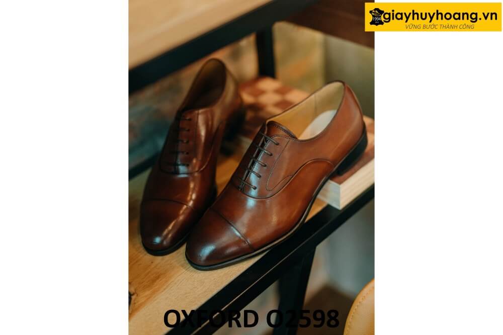 Giày tây Oxford nam đẹp đơn giản cơ bản O2598 sở hữu: Đặc điểm linh hoạt bền bỉ, Mịn đẹp tự nhiên, thoải mái thoáng mát. Nhờ sở hữu chất lượng da bê con từ những vùng núi tuyết nổi tiếng xa xỉ của Châu Âu. [Xem thêm mẫu giày da nam cao cấp thủ công cao cấp tại đây]