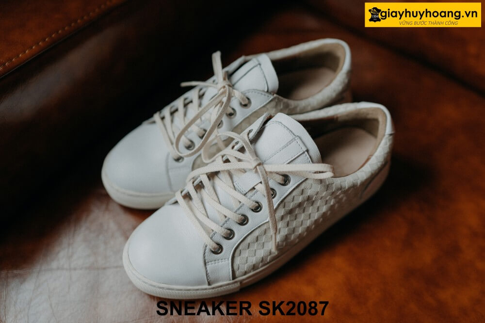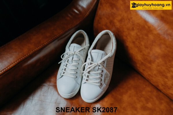 Giày sneaker nam màu trắng phối da lộn ô vuông SK2087 là một trong những thiết kế Handmade sáng tạo, độc đáo, hợp thời trang. Kết hợp giữa nguyên liệu da bê nhập khẩu chọn lọc từ vùng núi tuyết Châu Âu và hơn 150 đôi tay người thợ lành nghề qua 200 công đoạn khác nhau. Tạo nên sản phẩm bền bỉ có giá trị thẩm mỹ cao.