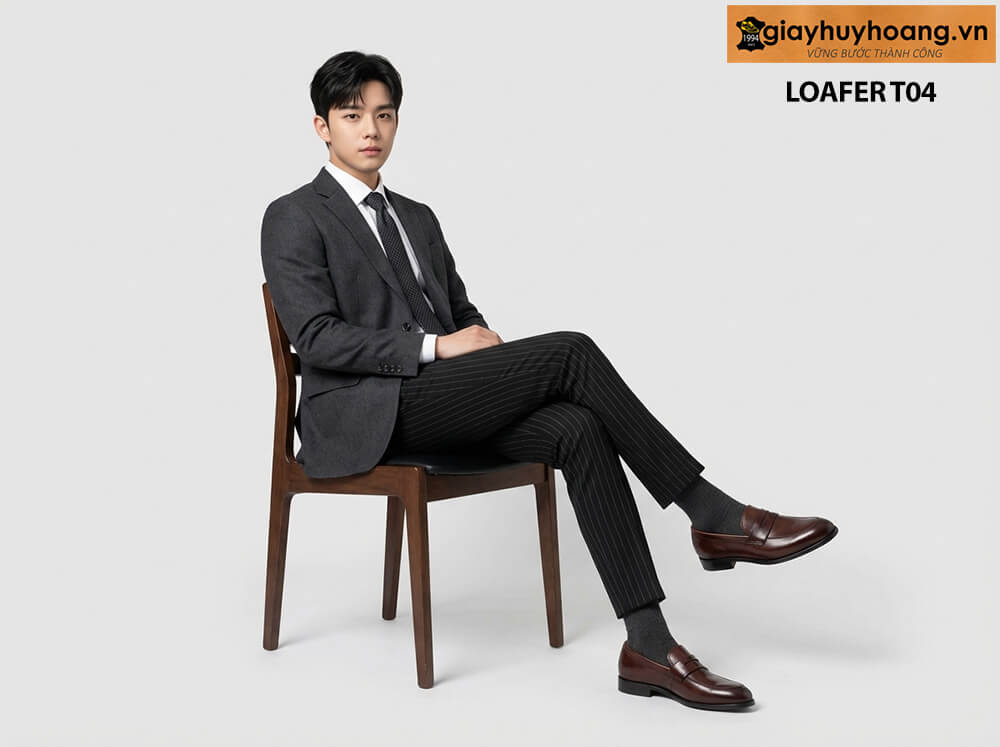 Giới thiệu sản phẩm Giày lười nam đơn giản thanh lịch màu nâu cao cấp T04