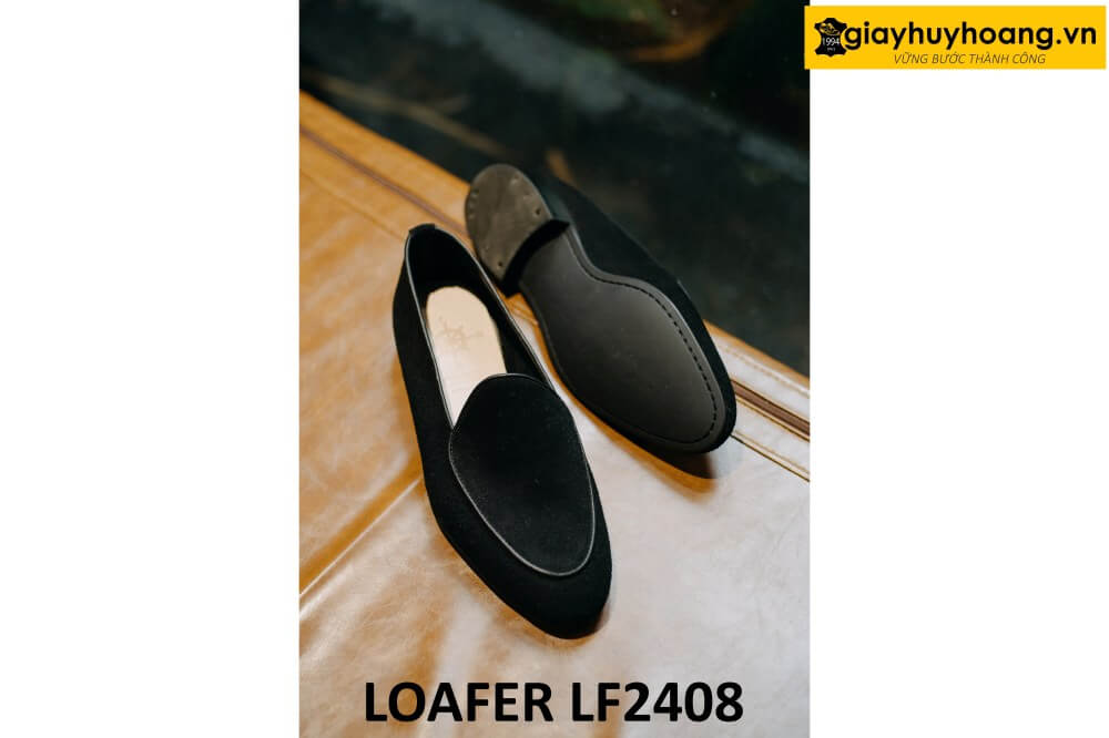 Xem Video qui trình sản xuất giày thủ công handmade cao cấp bởi giayhuyhoang.vn dưới đây, được áp dụng sản xuất Giày da lộn màu đen lười nam phối quần jeans loafer LF2408: