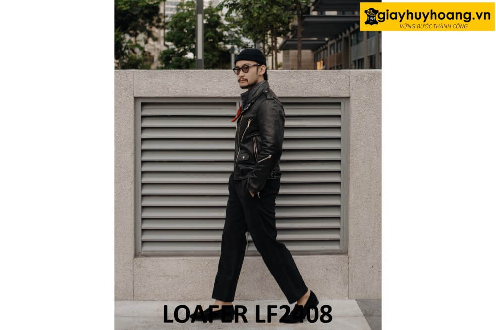 Giới thiệu sản phẩm Giày da lộn màu đen lười nam phối quần jeans loafer LF2408 chính hãng