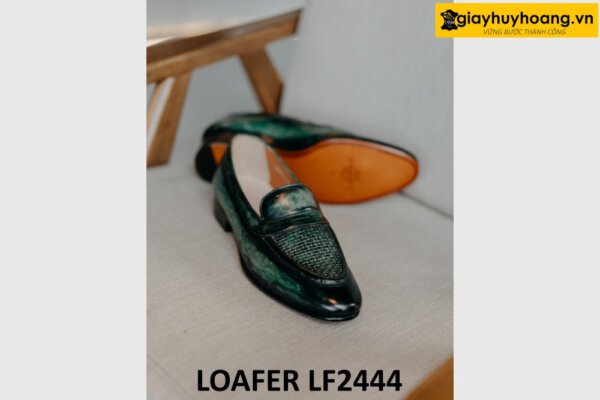 Giới thiệu sản phẩm Giày lười da nhuộm màu thủ công xanh lá loafer LF2444 chính hãng