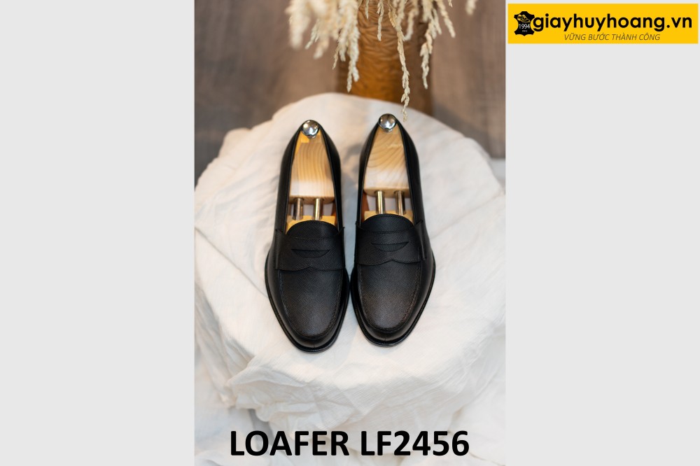 Giày lười nam màu đen da vân saffiano loafer LF2456
