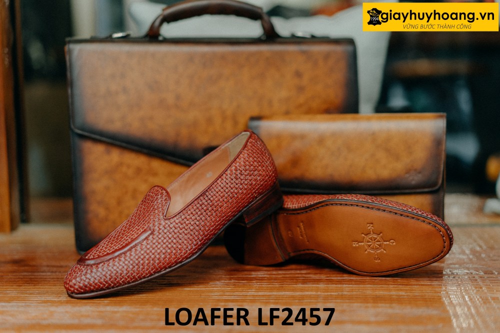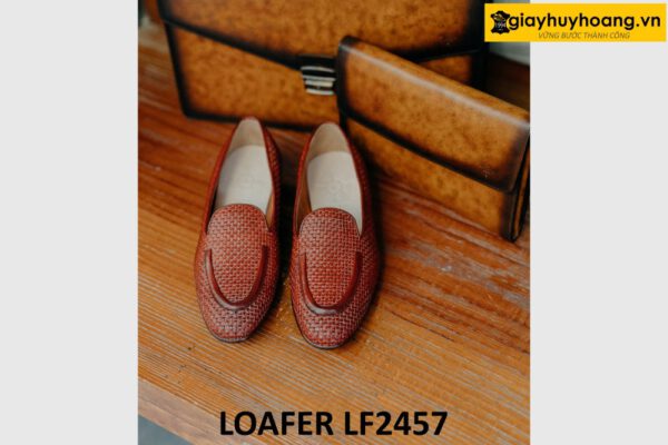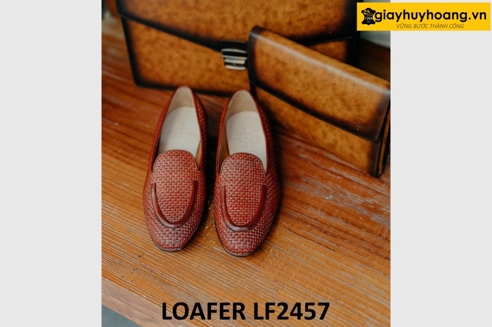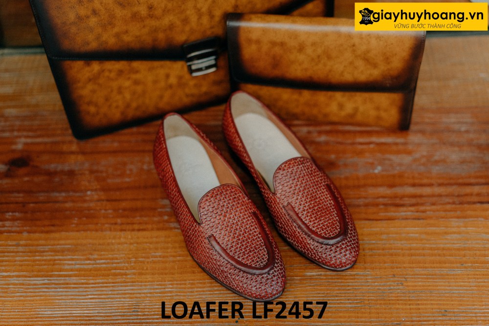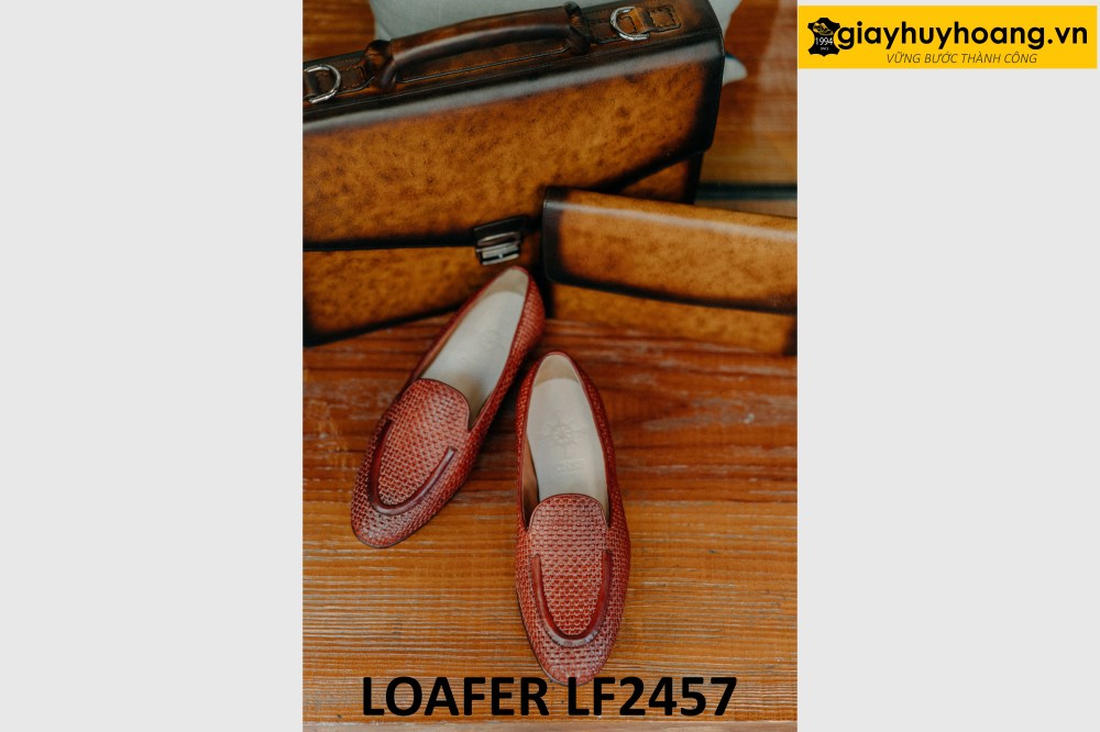 Giày lười nam không dây da đan xen loafer LF2457