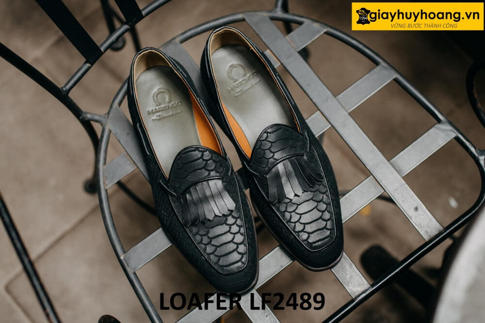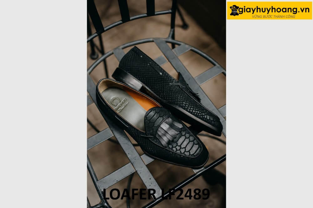 Giới thiệu sản phẩm Giày lười nam da lộn màu đen vân cá sấu loafer LF2489 chính hãng