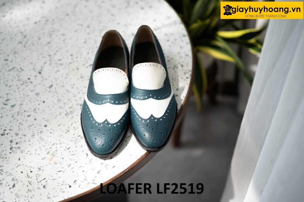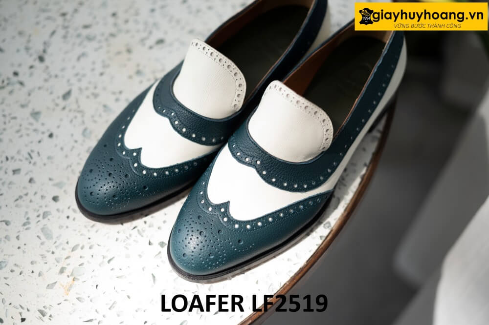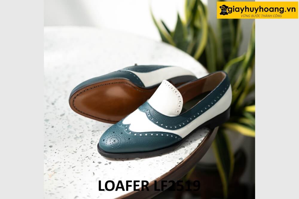 Giới thiệu sản phẩm Giày lười da hạt nam màu trắng phối xanh loafer LF2519 chính hãng