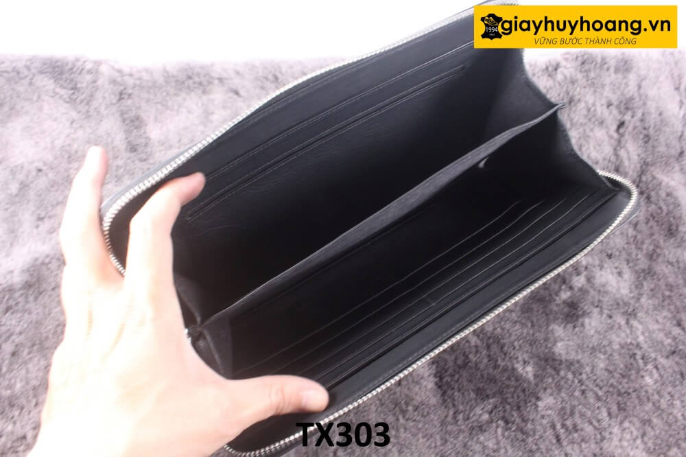 Túi ví cầm tay nam da cao cấp TX303 sở hữu làn da bê mịn đẹp nhập khẩu Châu Âu. Cùng với bàn tay thủ công lành nghề đem lại sản phẩm có chất lượng cao và sang trọng. Cùng với nhiều ngăn chứa rộng rãi, phù hợp với nhiều mục dích khác nhau trong cuộc sống.