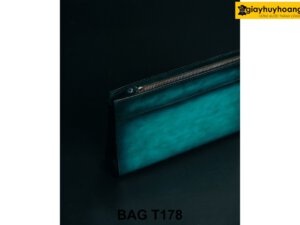 Túi ví cầm tay da bò màu xanh Patina đen T178